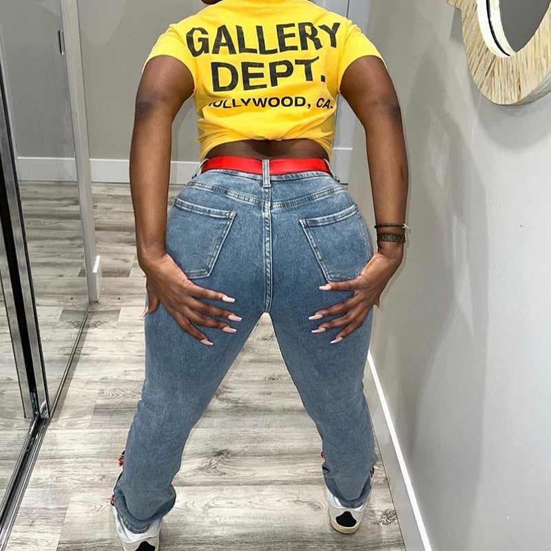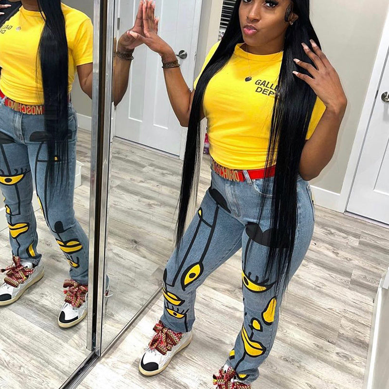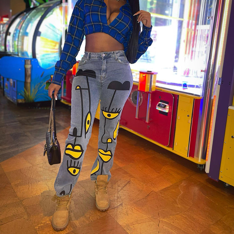 CUTENOVA K22PT289 2022 New Cotton Eyes Pattern Women's Pants Streetwear Women's Jeans Womens Denim Jeans