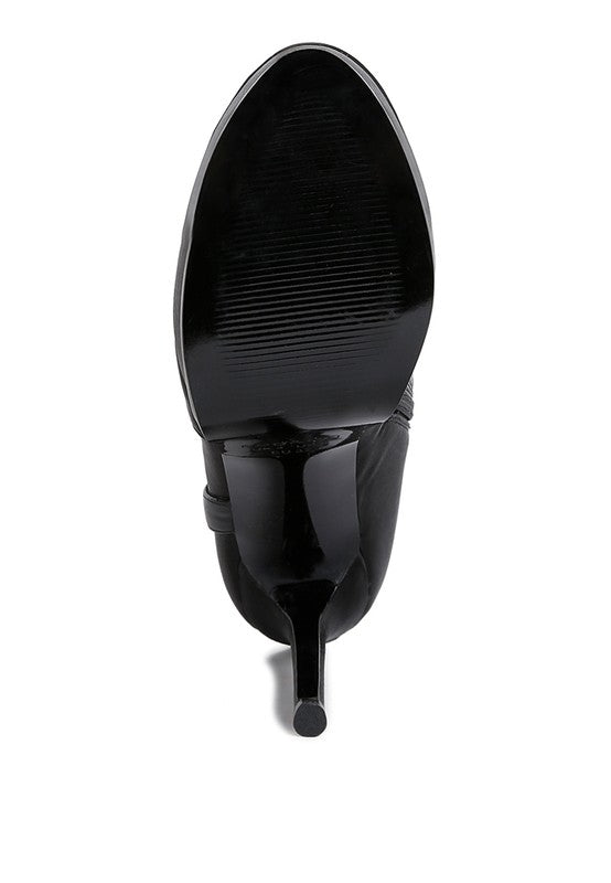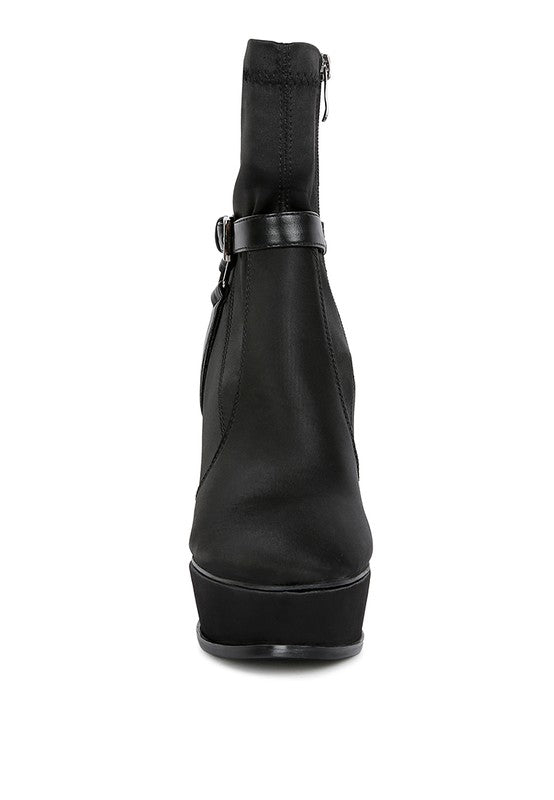 High heeled plush satin stiletto heeled ankle bootie. Made with fine craftsmanship, this pair of pointed toe structure luxe winter boot comes with side zipper opening and ankle band harness details. The elasticated dart gussets make it more flexible and...