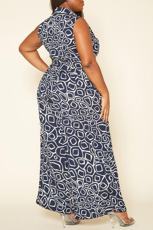 Plus Size Abstract Print Wide Flare Jumpsuit